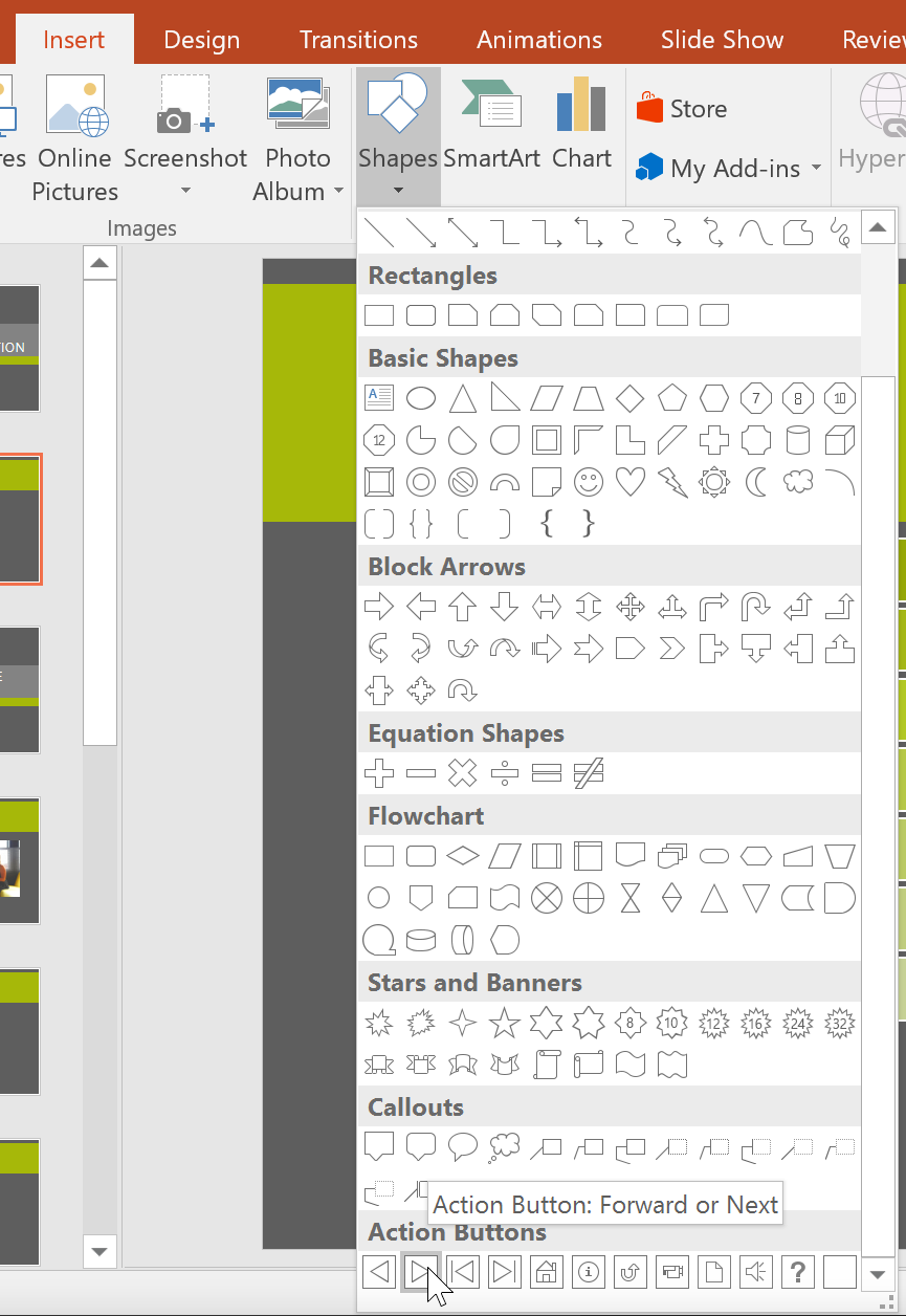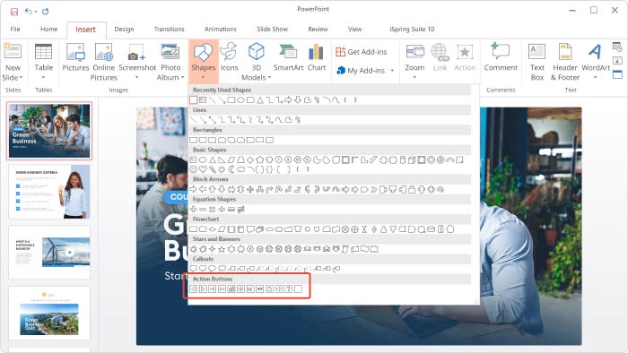 ابتدا یک دکمه عملیاتی از گالری Shapes انتخاب می کنید