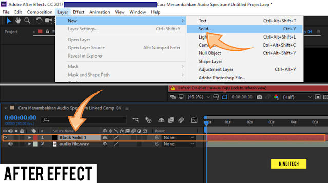 در قسمت کنترل افکت، به بخش «لایه صوتی» > تغییر از جامد سیاه به فایل صوتی که میخواهیم یک افکت اکولایزر یا طیف به آن بدهیم، بروید.