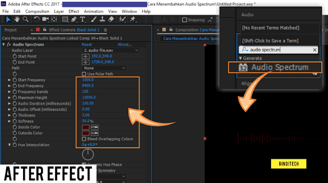 لایه مشکی را کلیک کنید و آن را فعال کنید، در قسمت جلوه، «طیف صوتی» را جستجو و تایپ کنید. جلوه طیف صوتی را به لایه سیاه و سفید یا صفحه نمایش اصلی بکشید (Drag and Drop) تا زمانی که تنظیمات کنترل افکت در سمت چپ صفحه ظاهر شود.