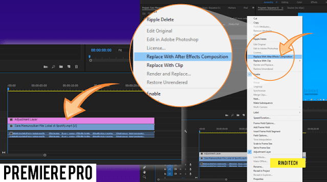 در مرحله بعد، روی لایه تنظیم کلیک راست کرده و >Replace with After Effects Composition را انتخاب کنید. برنامه After Effects به طور خودکار باز می شود، منتظر بمانید تا برنامه AE به طور کامل باز شود.