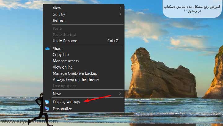 ابتدا روی فضای خالی در صفحه دسکتاپ خود راست کلیک کرده و Display settings را انتخاب کنید.