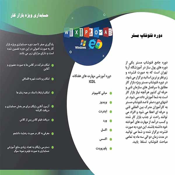 اگر به صنعت چاپ و گرافیک علاقمند هستید، شاید سایر دوره های آموزش گرافیک با مدرک بین المللی آموزشگاه فنی و حرفه ای آریا تهران برای شما جذاب و مفید باشد. برای کسب اطلاعات بیشتر روی لینک قبل کلیک کنید.